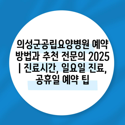 의성군공립요양병원 예약 방법과 추천 전연락 2025 | 진료시간, 일요일 진료, 공휴일 예약 팁 에 대해 자주 묻는 질문 TOP 5