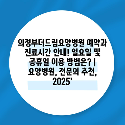 ✅ 의정부더드림요양병원 예약 절차와 진료시간을 지금 확인해 보세요.