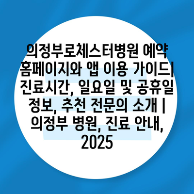 의정부로체스터병원 예약 홈페이지와 앱 이용 설명서| 진료시간, 일요일 및 공휴일 정보, 추천 전연락 소개 | 의정부 병원, 진료 공지, 2025 에 대해 자주 묻는 질문 TOP 5