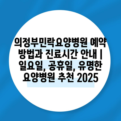 의정부민락요양병원 예약 방법과 진료시간 안내 | 일요일, 공휴일, 유명한 요양병원 추천 2025