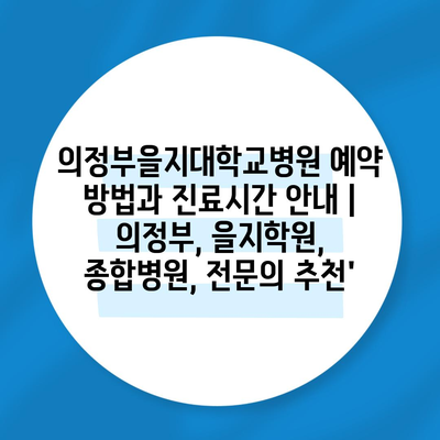 ✅ 의정부을지대학교병원 예약 방법을 자세히 알아보세요.