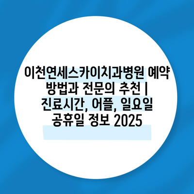 이천연세스카이치과병원 예약 방법과 전연락 추천 | 진료시간, 어플, 일요일 공휴일 정보 2025에 대해 알아보겠습니다.