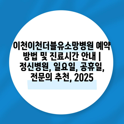이천이천더블유소망병원 예약 방법 및 진료시간 공지 | 정신병원, 일요일, 공휴일, 전연락 추천, 2025 에 대해 자주 묻는 질문 TOP 5