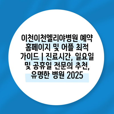 ✅ 이천이천엘리야병원의 진료시간과 예약 방법을 자세히 알아보세요!