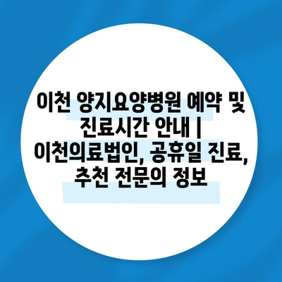 ✅ 이천 양지요양병원의 예약 방법과 진료 시간을 자세히 알아보세요.