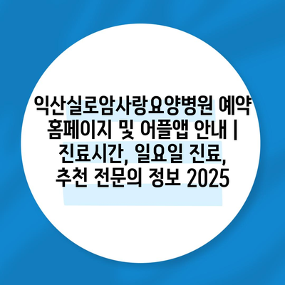 ✅ 익산실로암사랑요양병원의 예약 방법과 진료시간을 알아보세요.
