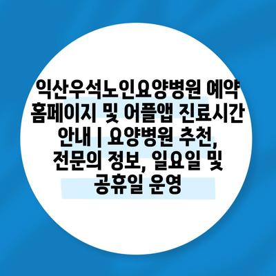 ✅ 익산우석노인요양병원 진료시간과 예약 방법을 지금 확인해 보세요.