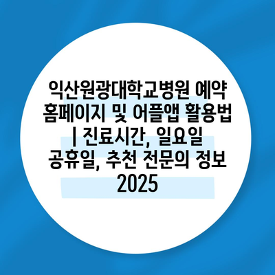 익산원광대학교병원 예약 홈페이지 및 어플앱 활용법 | 진료시간, 일요일 공휴일, 추천 전연락 정보 2025에 대해 알아보겠습니다.