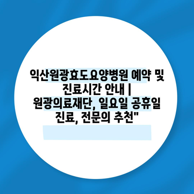 익산원광효도요양병원 예약 및 진료시간 안내 | 원광의료재단, 일요일 공휴일 진료, 전문의 추천”