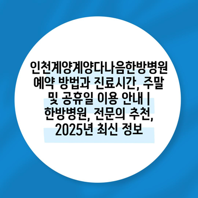 인천계양계양다나음한방병원 예약 방법과 진료시간, 주말 및 공휴일 이용 공지 | 한방병원, 전연락 추천, 2025년 최신 정보 에 대해 자주 묻는 질문 TOP 5