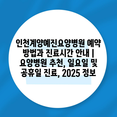 인천계양예진요양병원 예약 방법과 진료시간 공지 | 요양병원 추천, 일요일 및 공휴일 진료, 2025 정보 에 대해 자주 묻는 질문 TOP 5