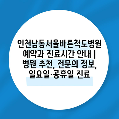 ✅ 인천남동서울바른척도병원의 진료시간과 예약 정보를 상세히 알아보세요.