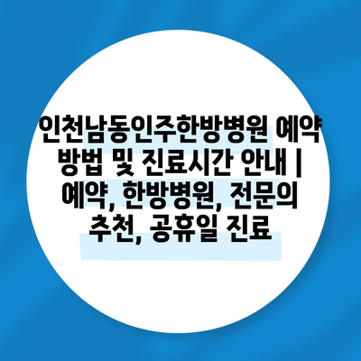 인천남동인주한방병원 예약 방법 및 진료시간 공지 | 예약, 한방병원, 전연락 추천, 공휴일 진료에 대해 자주 묻는 질문 TOP 5
