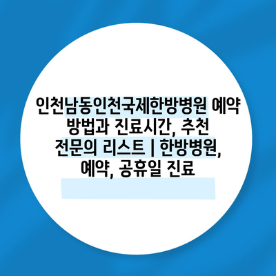 ✅ 인천남동인천국제한방병원의 예약 방법과 진료시간을 지금 바로 알아보세요!