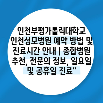 인천부평가톨릭대학교 인천성모병원 예약 방법 및 진료시간 공지 | 종합병원 추천, 전연락 정보, 일요일 및 공휴일 진료
