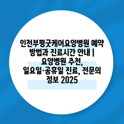 인천부평굿케어요양병원 예약 방법과 진료시간 공지 | 요양병원 추천, 일요일·공휴일 진료, 전연락 정보 2025에 대해 알아보겠습니다.