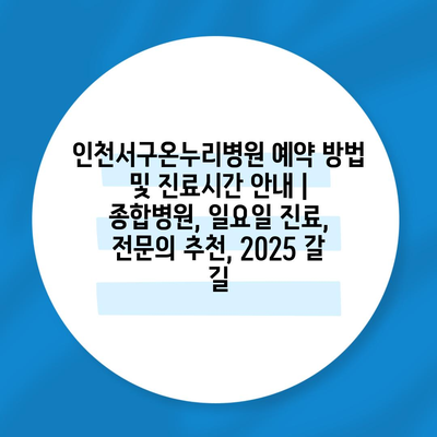 인천서구온누리병원 예약 방법 및 진료시간 안내 | 종합병원, 일요일 진료, 전문의 추천, 2025 갈 길