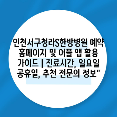 ✅ 인천서구청라S한방병원의 진료시간과 예약 방법을 자세히 알아보세요.