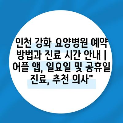 인천 강화 요양병원 예약 방법과 진료 시간 공지 | 어플 앱, 일요일 및 공휴일 진료, 추천 의사