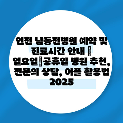 인천 남동전병원 예약 및 진료시간 공지 | 일요일・공휴일 병원 추천, 전연락 상담, 어플 활용법 2025에 대해 알아보겠습니다.