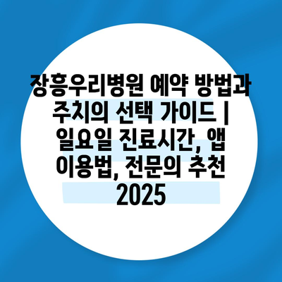 장흥우리병원 예약 방법과 주치의 선택 가이드 | 일요일 진료시간, 앱 이용법, 전문의 추천 2025