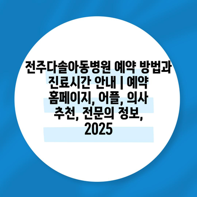 전주다솔아동병원 예약 방법과 진료시간 공지 | 예약 홈페이지, 어플, 의사 추천, 전연락 정보, 2025 에 대해 자주 묻는 질문 TOP 5