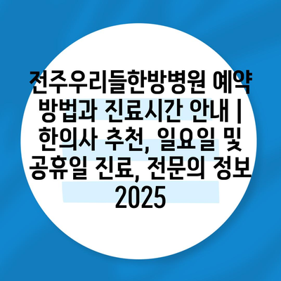 전주우리들한방병원 예약 방법과 진료시간 공지 | 한의사 추천, 일요일 및 공휴일 진료, 전연락 정보 2025에 대해 자주 묻는 질문 TOP 5