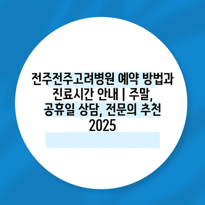 전주전주고려병원 예약 방법과 진료시간 공지 | 주말, 공휴일 상담, 전연락 추천 2025 에 대해 자주 묻는 질문 TOP 5