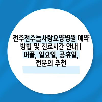 전주전주늘사랑요양병원의 예약 방법과 진료 시간을 지금 바로 알아보세요!