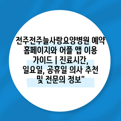 전주전주늘사랑요양병원 예약 홈페이지와 어플 앱 이용 설명서 | 진료시간, 일요일, 공휴일 의사 추천 및 전연락 정보에 대해 자주 묻는 질문 TOP 5