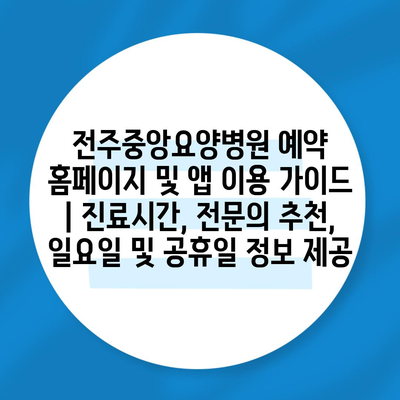 전주중앙요양병원 예약 홈페이지 및 앱 이용 설명서 | 진료시간, 전연락 추천, 일요일 및 공휴일 정보 제공