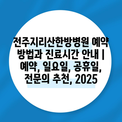 전주지리산한방병원 예약 방법과 진료시간 공지 | 예약, 일요일, 공휴일, 전연락 추천, 2025 에 대해 자주 묻는 질문 TOP 5