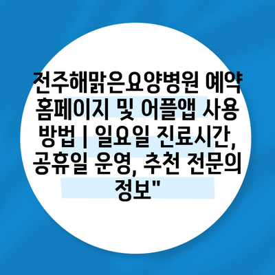 전주해맑은요양병원 예약 홈페이지 및 어플앱 사용 방법 | 일요일 진료시간, 공휴일 운영, 추천 전연락 정보” 에 대해 자주 묻는 질문 TOP 5