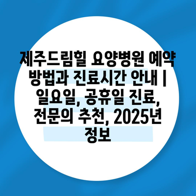 제주드림힐 요양병원 예약 방법과 진료시간 안내 | 일요일, 공휴일 진료, 전문의 추천, 2025년 정보