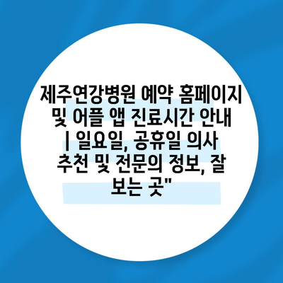 ✅ 제주연강병원의 진료시간 및 예약 방법을 지금 바로 알아보세요!