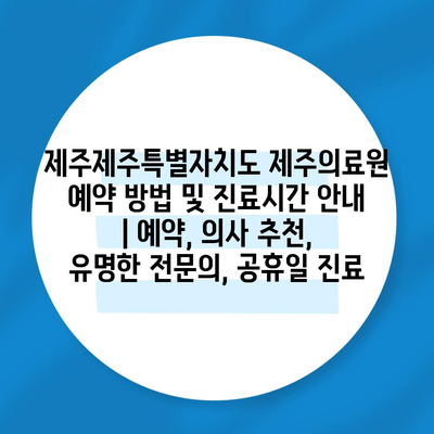 ✅ 제주제주특별자치도의 진료 시간 및 예약 방법을 쉽게 알아보세요.