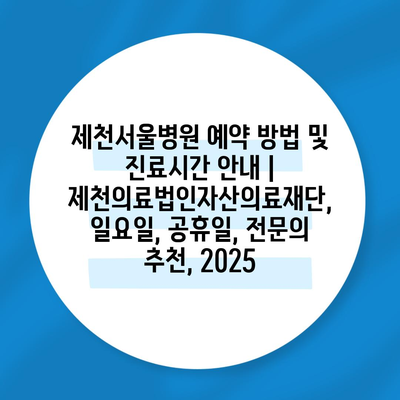 ✅ 제천서울병원의 예약 방법과 진료 시간을 확인해 보세요!