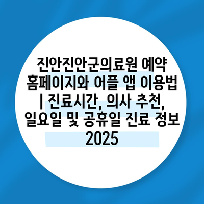 진안진안군의료원 예약 홈페이지와 어플 앱 이용법 | 진료시간, 의사 추천, 일요일 및 공휴일 진료 정보 2025