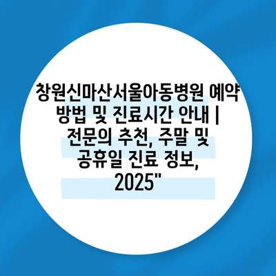✅ 창원신마산서울아동병원 예약 방법을 자세히 알아보세요.