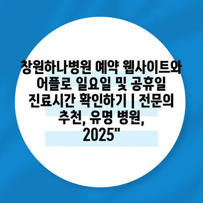 창원하나병원 예약 웹사이트와 어플로 일요일 및 공휴일 진료시간 확인하기 | 전연락 추천, 유명 병원, 2025″ 에 대해 자주 묻는 질문 TOP 5