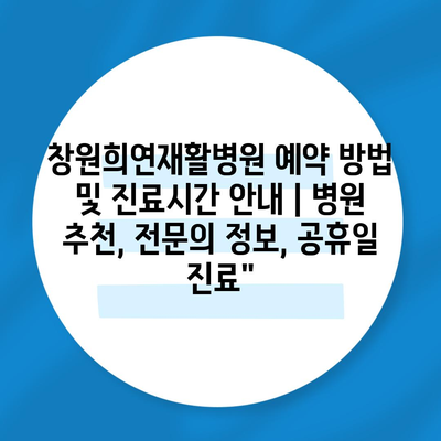 ✅ 창원희연재활병원의 진료시간과 예약 방법을 지금 바로 알아보세요!