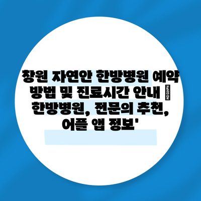 ✅ 창원 자연안 한방병원 예약 방법을 자세히 알아보세요.