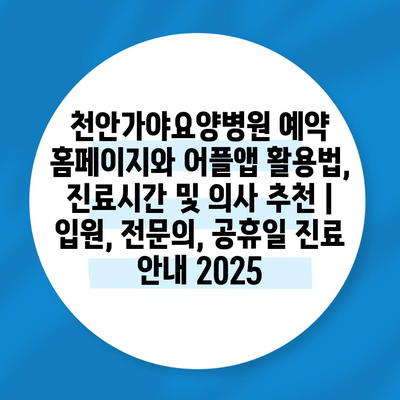 천안가야요양병원 예약 홈페이지와 어플앱 활용법, 진료시간 및 의사 추천 | 입원, 전연락, 공휴일 진료 공지 2025에 대해 소개합니다.