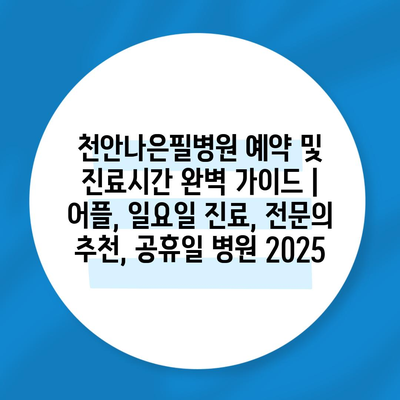 ✅ 천안나은필병원 예약 방법과 팁을 알아보세요.