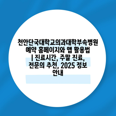 천안단국대학교의과대학부속병원 예약 홈페이지와 앱 활용법 | 진료시간, 주말 진료, 전연락 추천, 2025 정보 공지 에 대해 자주 묻는 질문 TOP 5