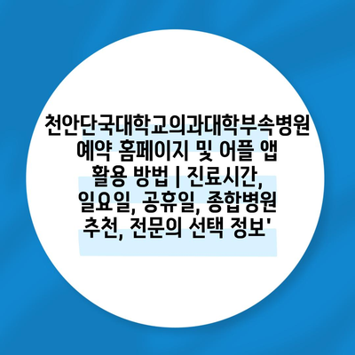 천안단국대학교의과대학부속병원 예약 홈페이지 및 어플 앱 활용 방법 | 진료시간, 일요일, 공휴일, 종합병원 추천, 전연락 선택 정보’에 대해 자주 묻는 질문 TOP 5