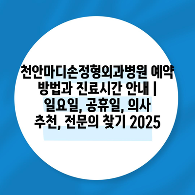 ✅ 천안마디손정형외과병원의 진료시간과 예약 방법을 자세히 알아보세요.