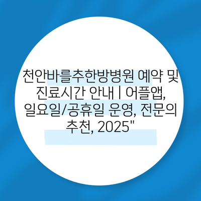 천안바를추한방병원 예약 및 진료시간 공지 | 어플앱, 일요일/공휴일 운영, 전연락 추천, 2025″ 에 대해 자주 묻는 질문 TOP 5