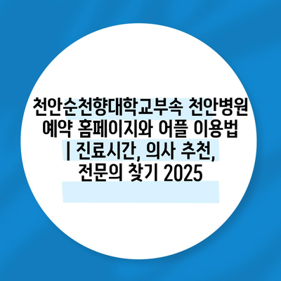 천안순천향대학교부속 천안병원 예약 홈페이지와 어플 이용법 | 진료시간, 의사 추천, 전연락 찾기 2025에 대해 자주 묻는 질문 TOP 5