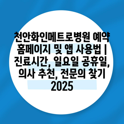 ✅ 천안화인메트로병원의 진료시간과 예약 방법을 알아보세요.